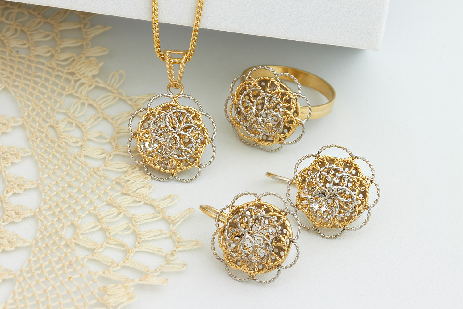 Profesionalne fotografije koje prikazuju ručno izrađeni zlatni nakit i motive tradicionalnog bosanskog keranja, s fokusom na kvalitet, teksturu i unikatne detalje.